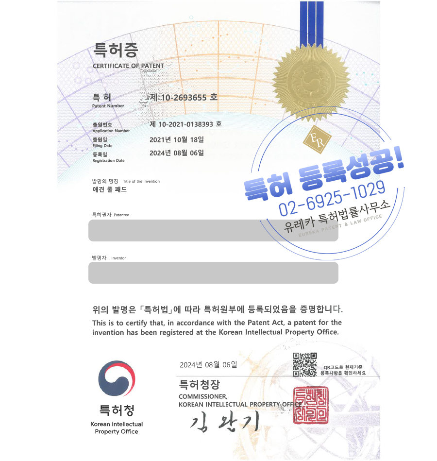 유레카특허법률사무소에서 특허등록 성공했습니다!