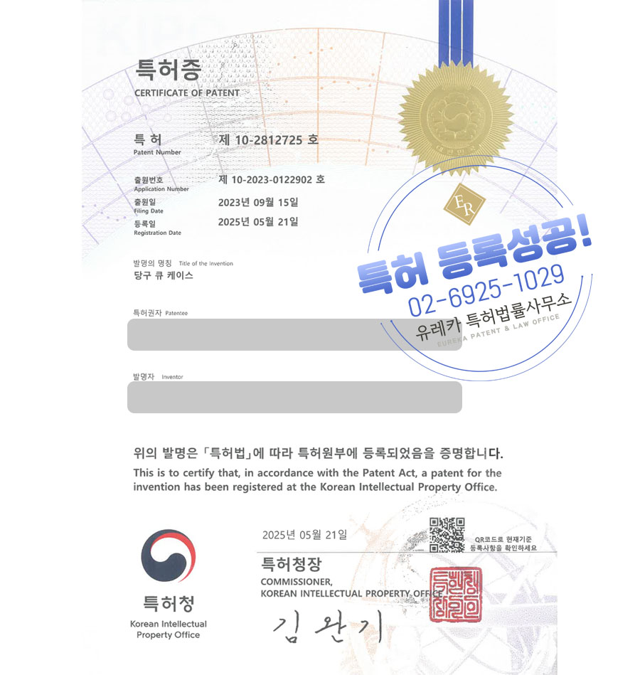 유레카특허법률사무소에서 특허등록 성공했습니다!