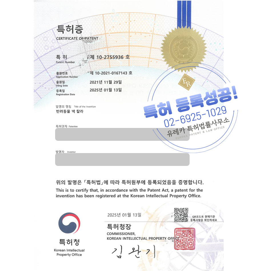 유레카특허법률사무소에서 특허등록 성공했습니다!