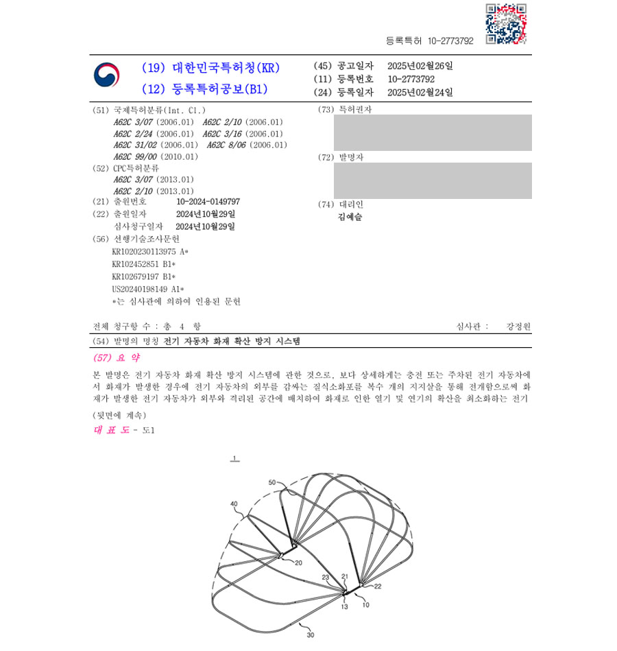 이와 같은 차별점을 기반으로 전략적인 특허출원을 진행하여 최종적으로 특허등록에
