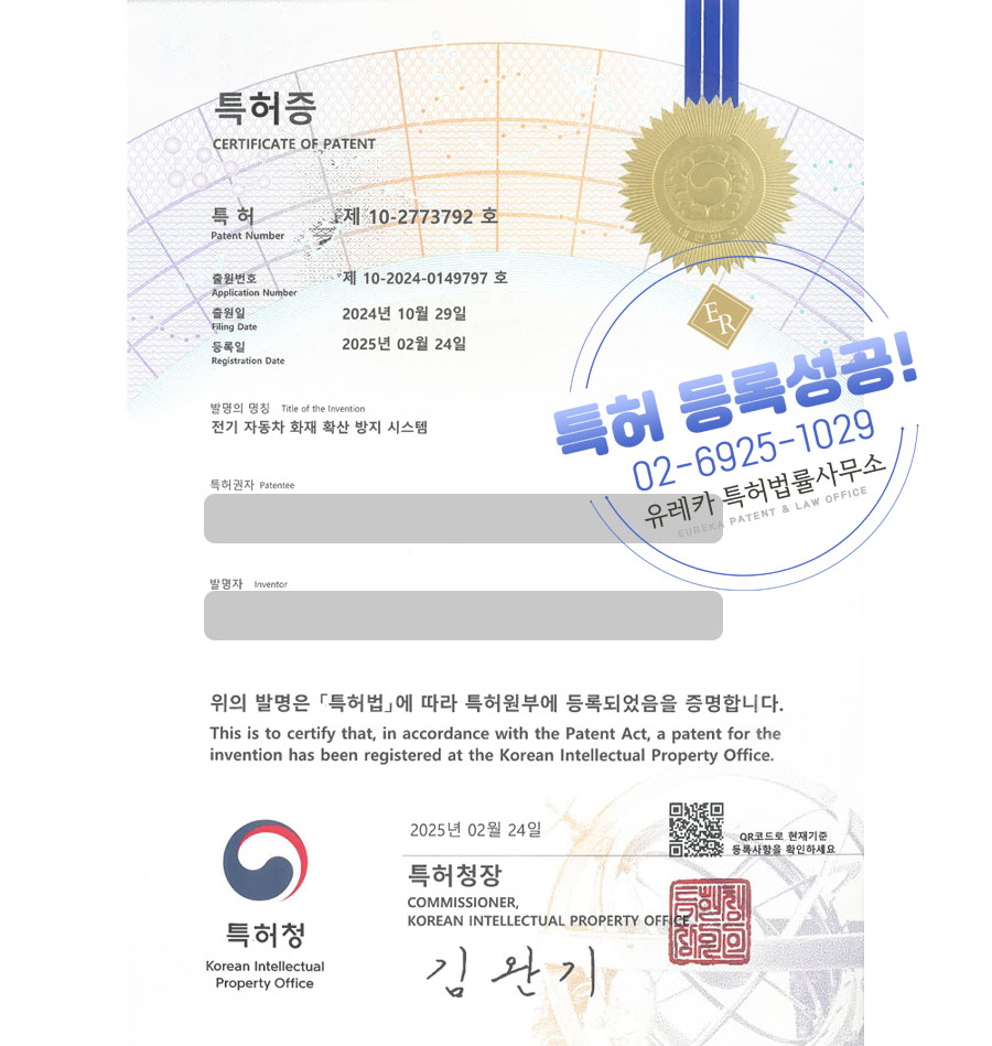 유레카특허법률사무소에서 특허등록 성공했습니다!
