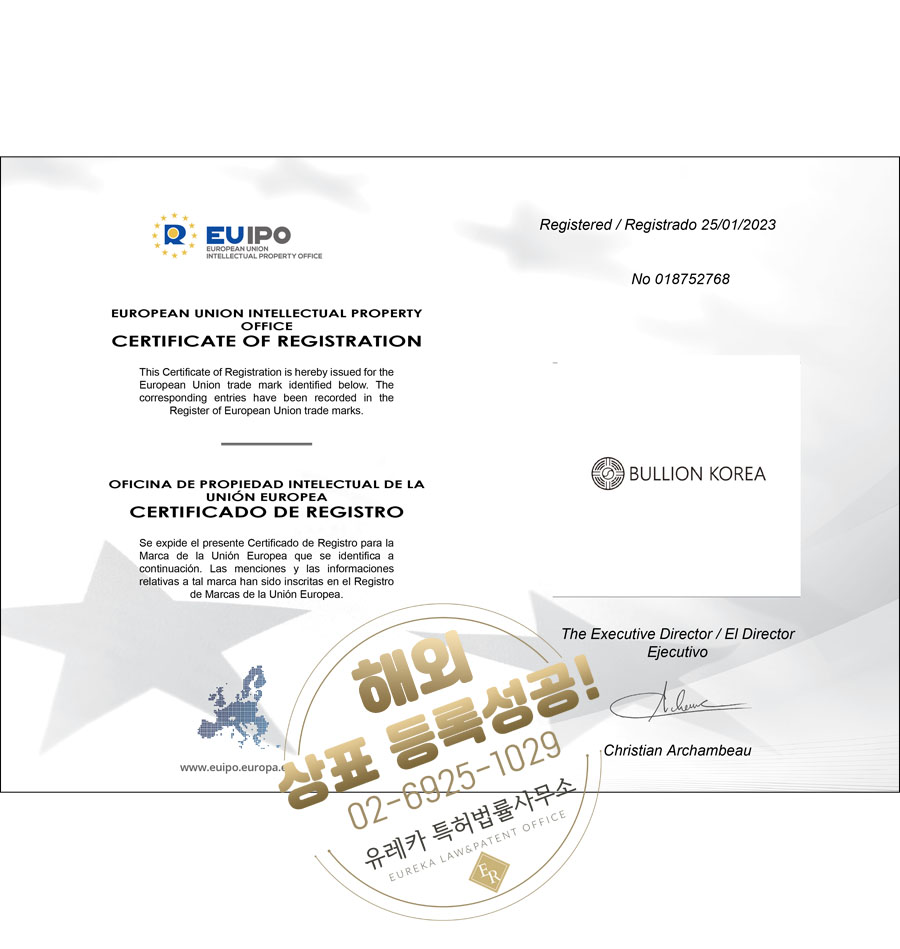 상표심사를 통과하여, 최종적으로 유럽 상표등록에 성공하였습니다!