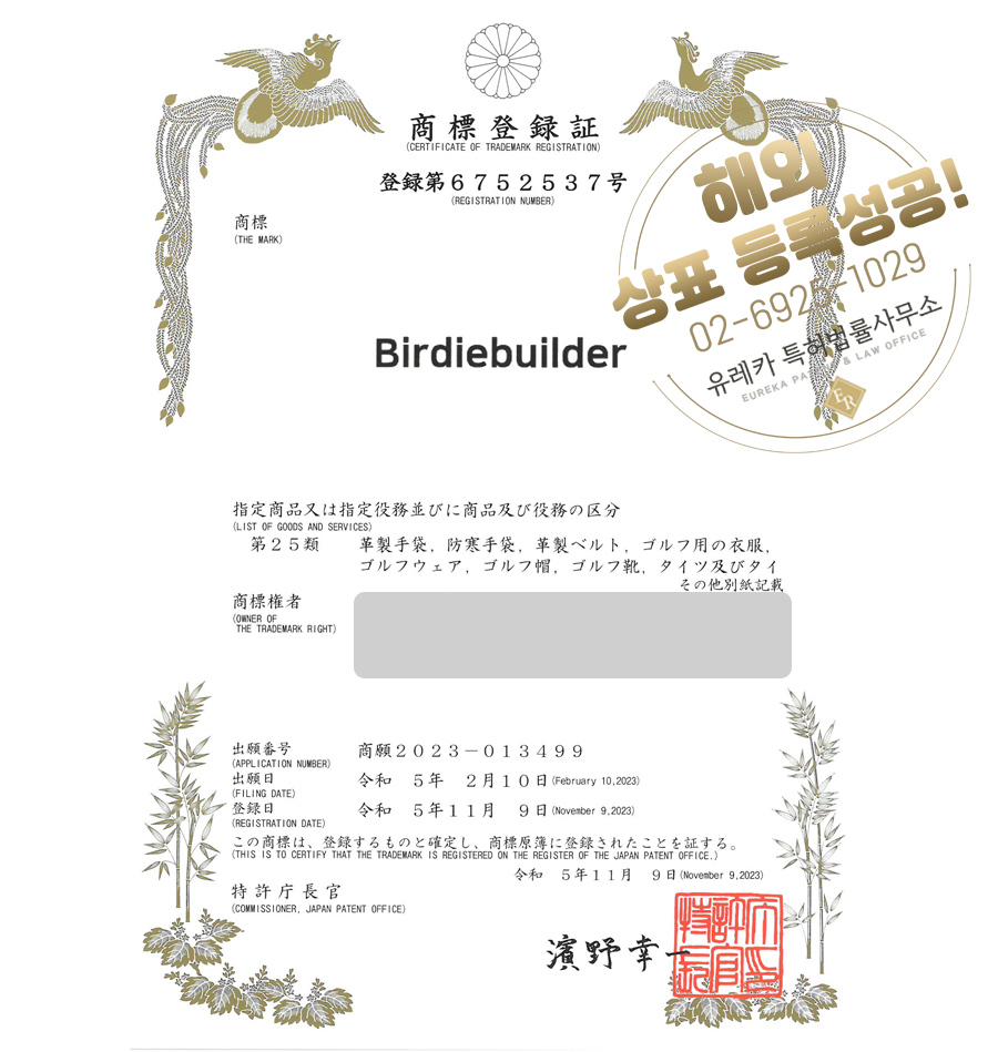 상표심사를 통과하여, 최종적으로 일본 등 상표등록에 성공하였습니다!