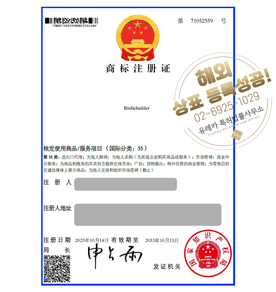 유레카 해외등록 성공! 중국 상표 출원 “Birdiebuilder” 말레이시아, 호주, 일본, 베트남, 태국, 절차, 방법, 심사, 상표권 특허 등록
