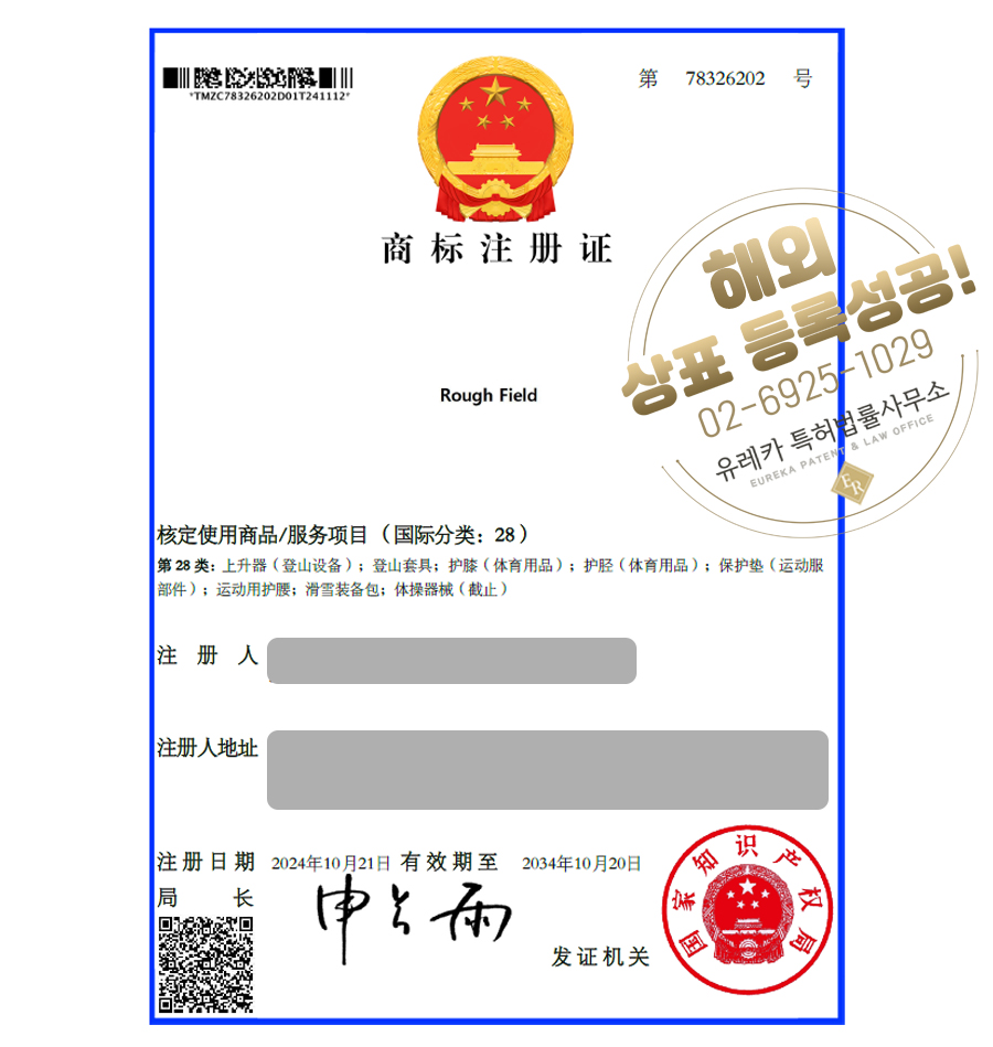 유레카 해외등록 성공! 중국 상표 출원 “Rough Field” 대만, 말레이시아, 베트남, 홍콩, 필리핀, 절차, 방법, 심사, 상표권 특허 등록