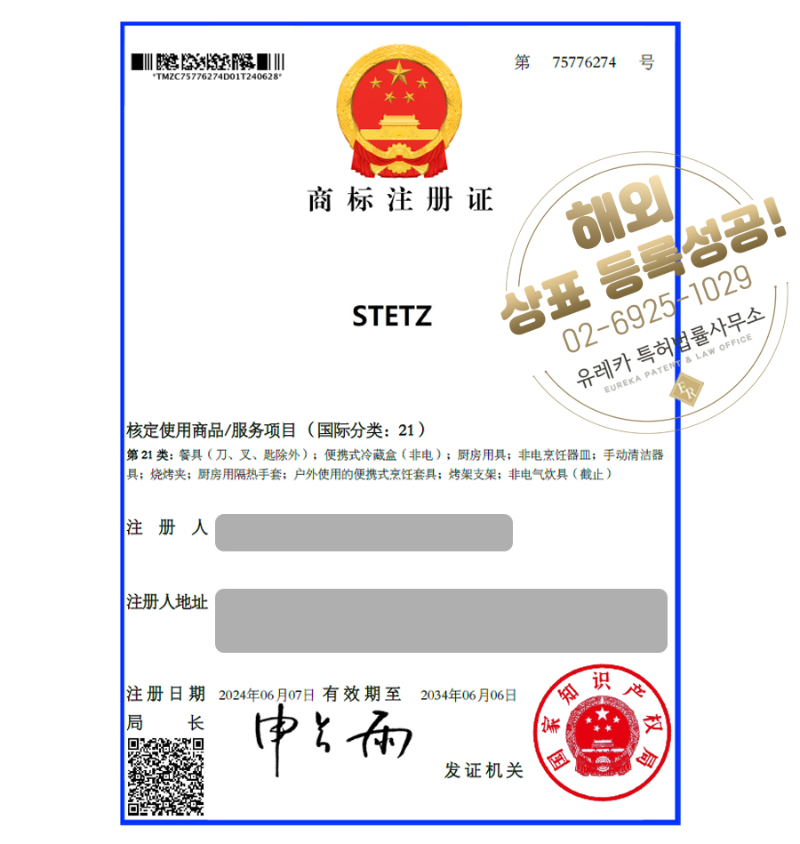 유레카 해외등록 성공! 중국 상표 출원 “STETZ” 말레이시아, 일본, 필리핀, 대만, 러시아, 절차, 방법, 심사, 상표권 특허 등록