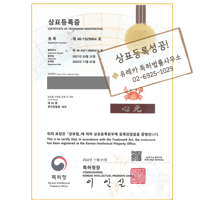 음식점 간장게장 상표등록 프랜차이즈 '심원' 상표등록 완료!