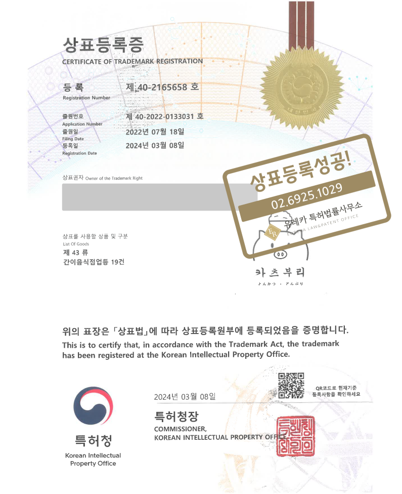 음식점, 요식업, 식당, 맛집, 돈가스, 일식, 고기집, 배달 '카츠부리' 상표등록