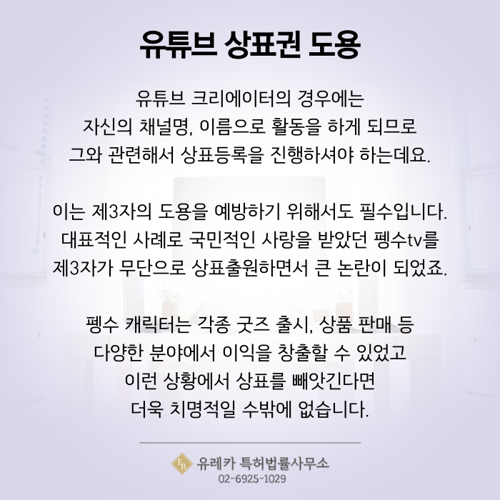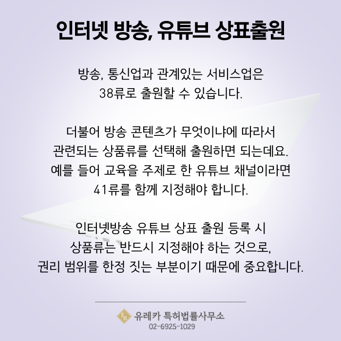 위한 인터넷방송 유튜브 상표 출원 등록이 필요하게 된 것입니다.