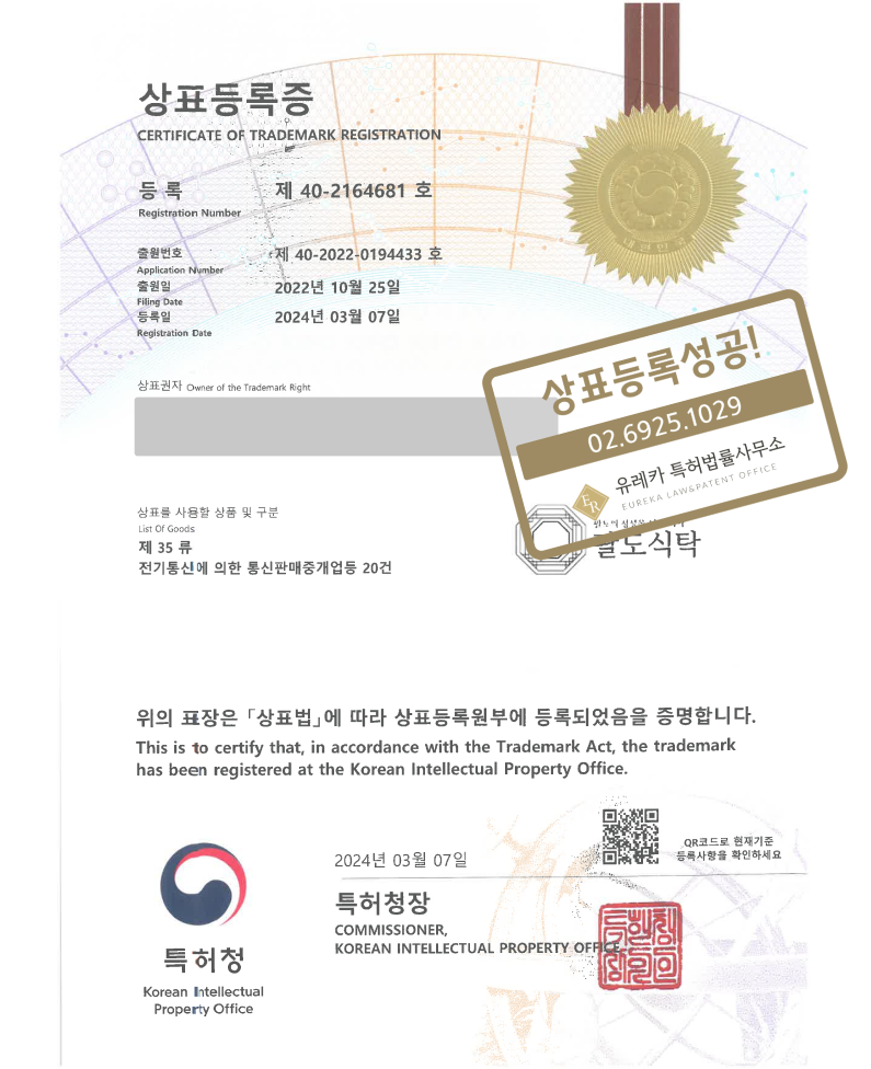 이러한 상품을 전문적으로 판매하는 팔도식탁의 상표등록를 유레카에서 성공했습니다!