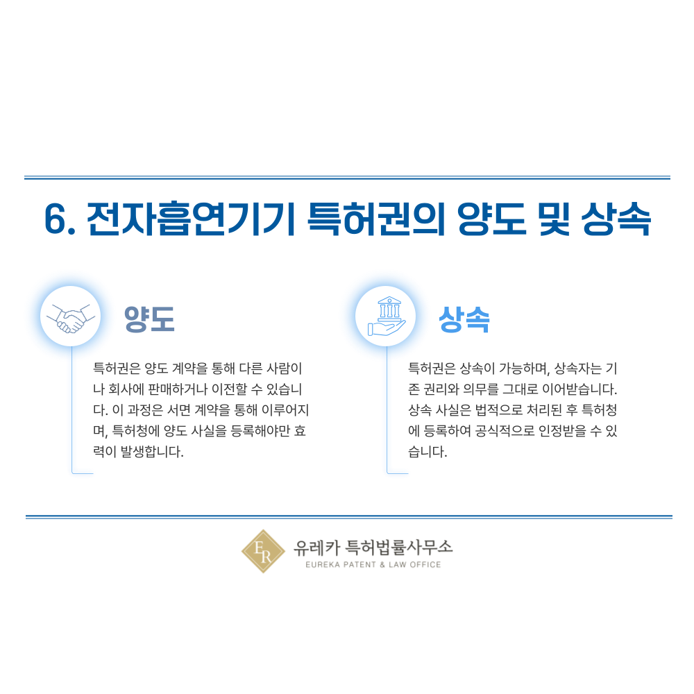 6. 전자 담배, 배터리, 히터, 코일, 심지, 팟, 카트리지, 에어플로우 기술 특허권의 양도 및 상속