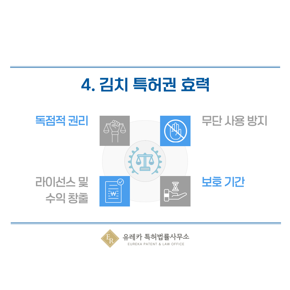 김치 특허도 출원일 기준 최대 20년간 보호돼요.