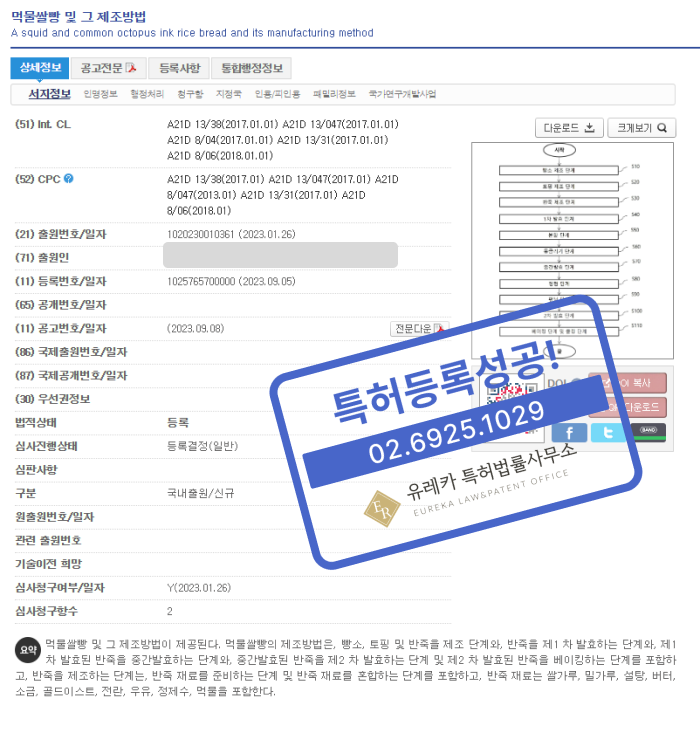 위 사례는 빵 제조에 관한 특허 성공 사례입니다.