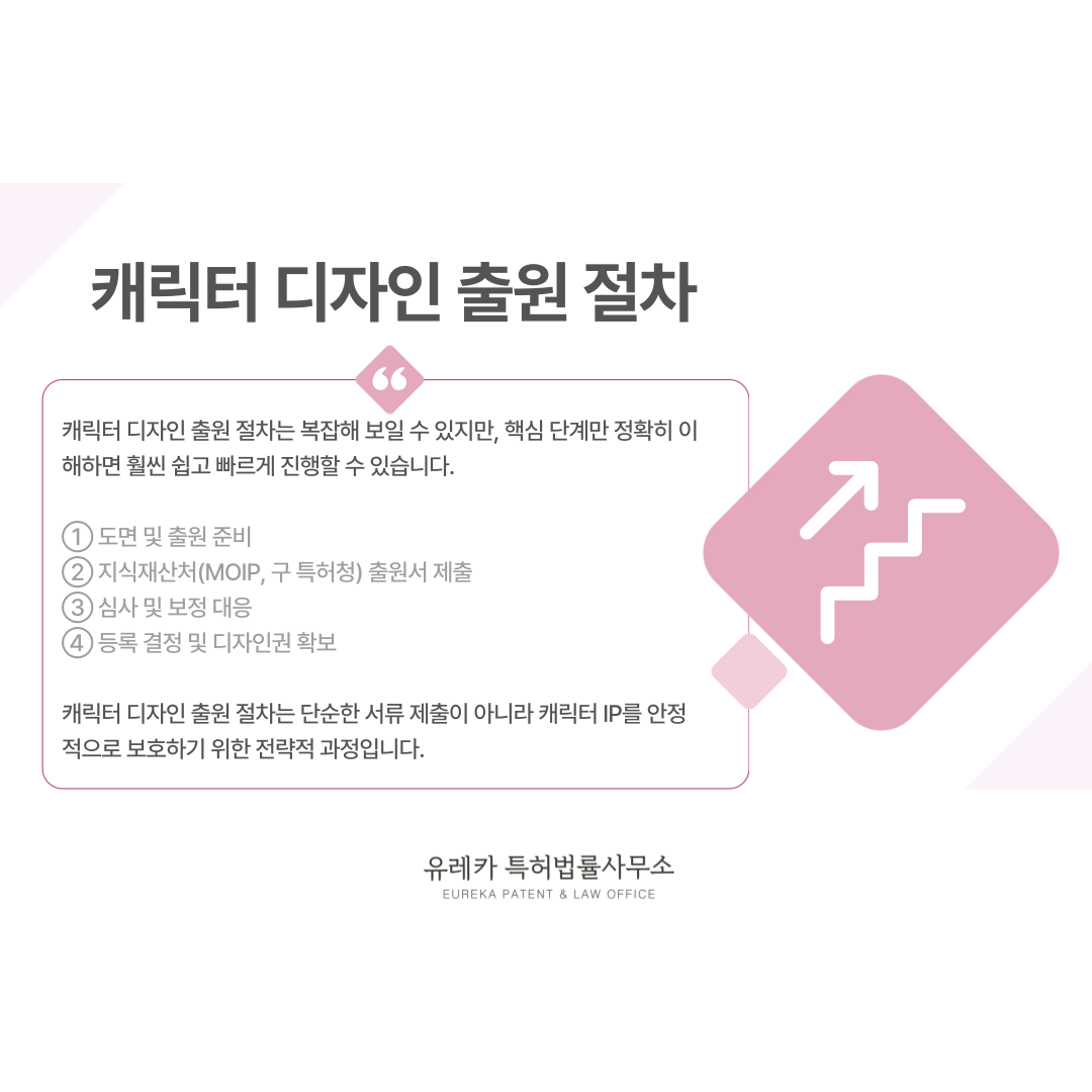 캐릭터 디자인 출원 절차는 단순한 서류 제출이 아니라 캐릭터 IP를 안정적으로 보호하기 위한 전략적 과정입니다.