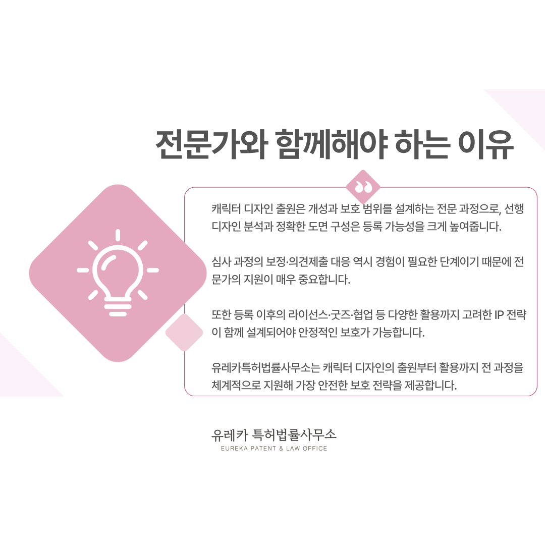 이 단계에서 방향을 정확하게 잡아두면 심사 과정에서의 위험을 줄이고, 캐릭터 디자인을 더 넓고 안정적으로 보호할 수 있습니다.