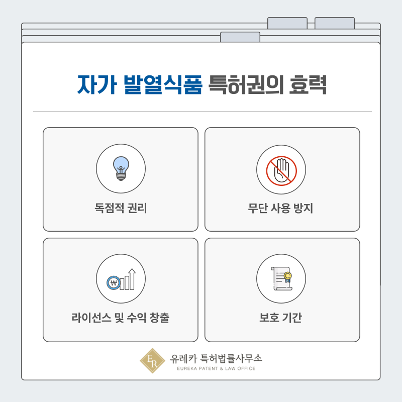 이 기간 동안에는 특허권자가 해당 발열 식품 기술을 독점적으로 활용할 수 있습니다.