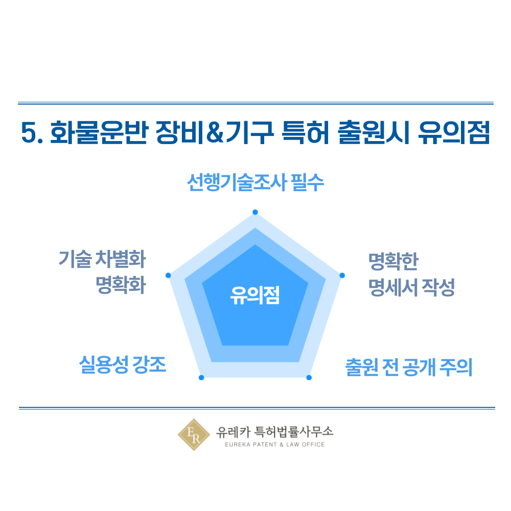핵심 구조, 구동 방식, 적재나 조향 기능 등을 구체적으로 설명한 명세서와 보호받고 싶은 범위를 정한 청구항을 함께 준비해요.