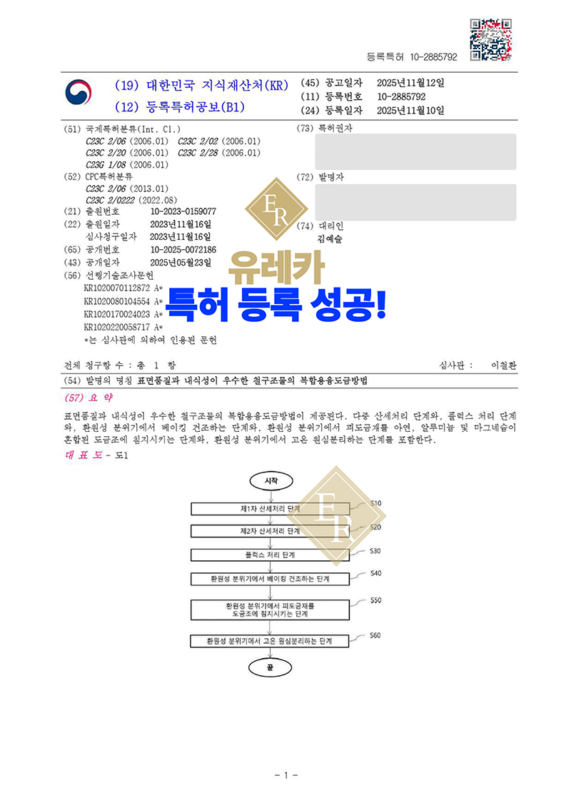 금속·표면처리 공정 기술 특허를 체계적으로 설계해 드리고 있습니다.