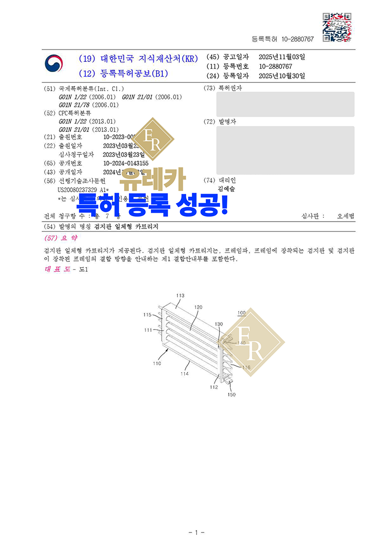 #검지관일체형카트리지 #가스검지기술 #유해가스검출 #가스농도측정 #화학가스분석 #대기가스모니터링 #가스검지장치특허 #산업안전기술 #PatentRegistration #PatentApplication #특허 #특허출원 #특허등록 #특허권 #특허등록사례 #유레카특허법률사무소