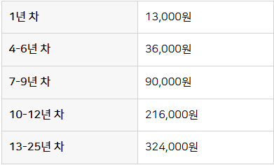 ※ 연차등록료의 납부금액은 다음과 같이 구분됩니다.