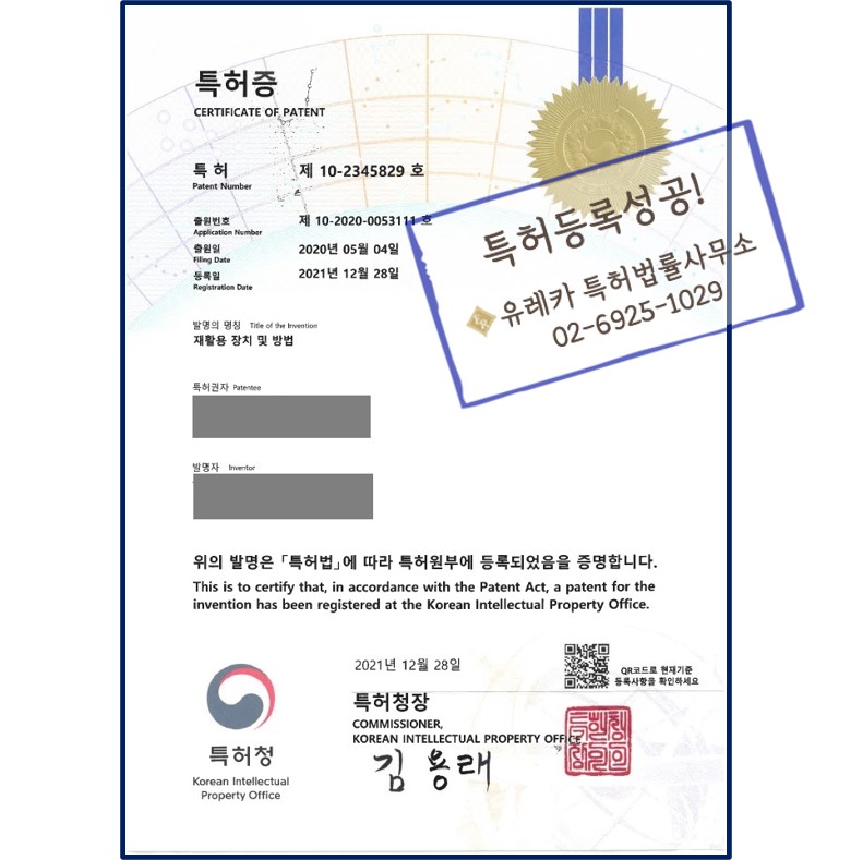 유레카에서 특허등록을 완료하였습니다!