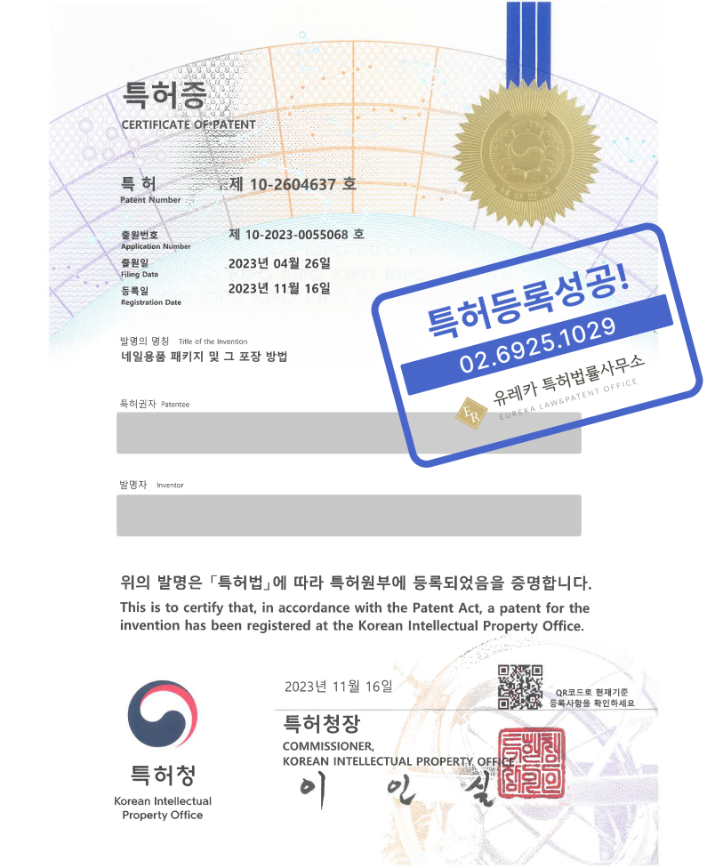 유레카특허법률사무에서 특허등록을 완료했습니다!
