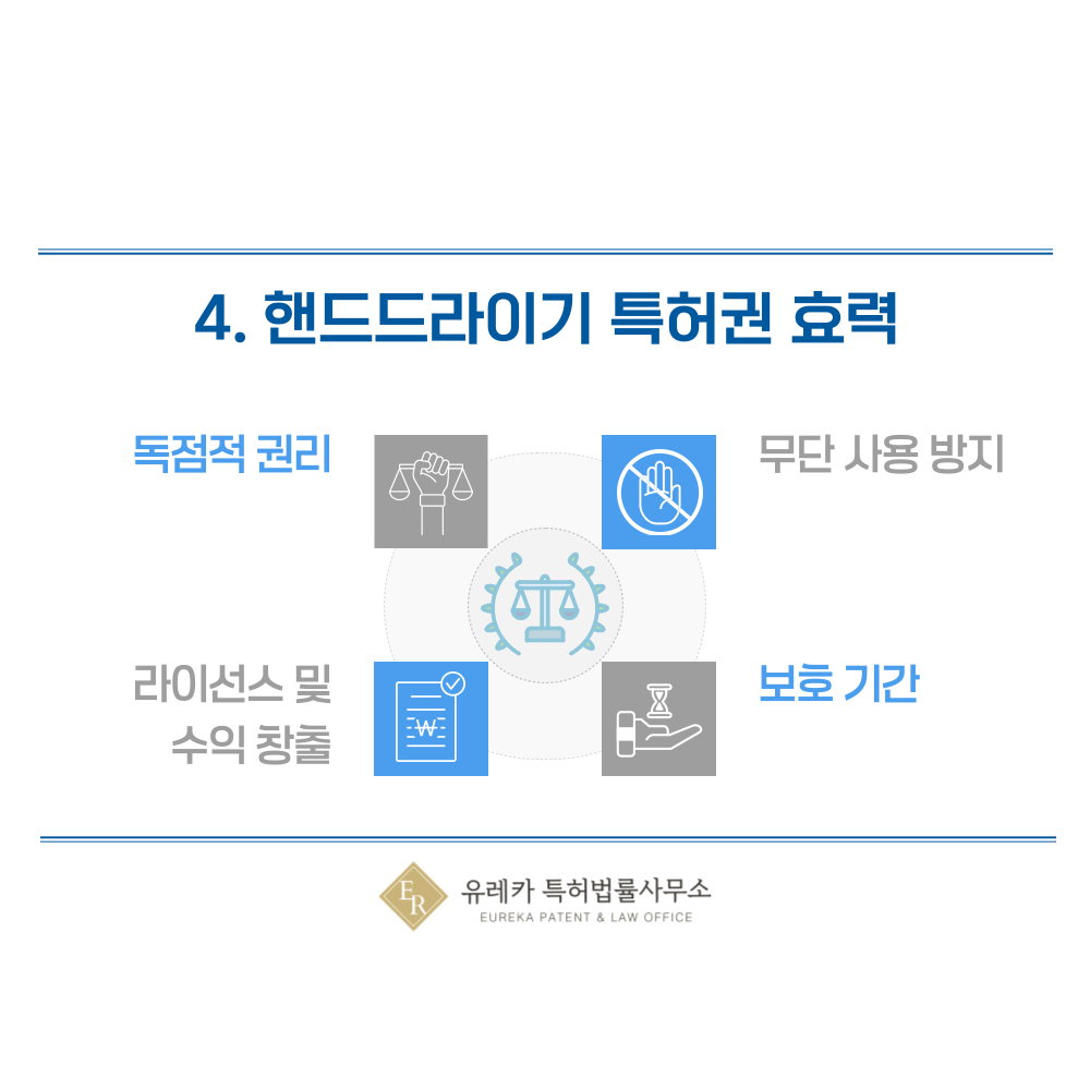 특허가 등록되면, 해당 핸드드라이어 기술은 특허권자만 사용할 수 있는 독점적인 권리가 생겨요.
