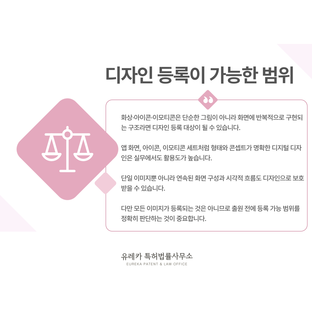 특히 화상·아이콘·이모티콘 디자인은 일반 제품 디자인과 다른 기준이 적용됩니다.