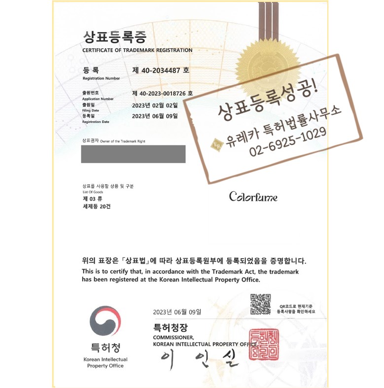 화장품, 생활용품, 스마트스토어, 인터넷쇼핑몰 "(logo)Colorfume" 유레카에서 상표등록 완료!