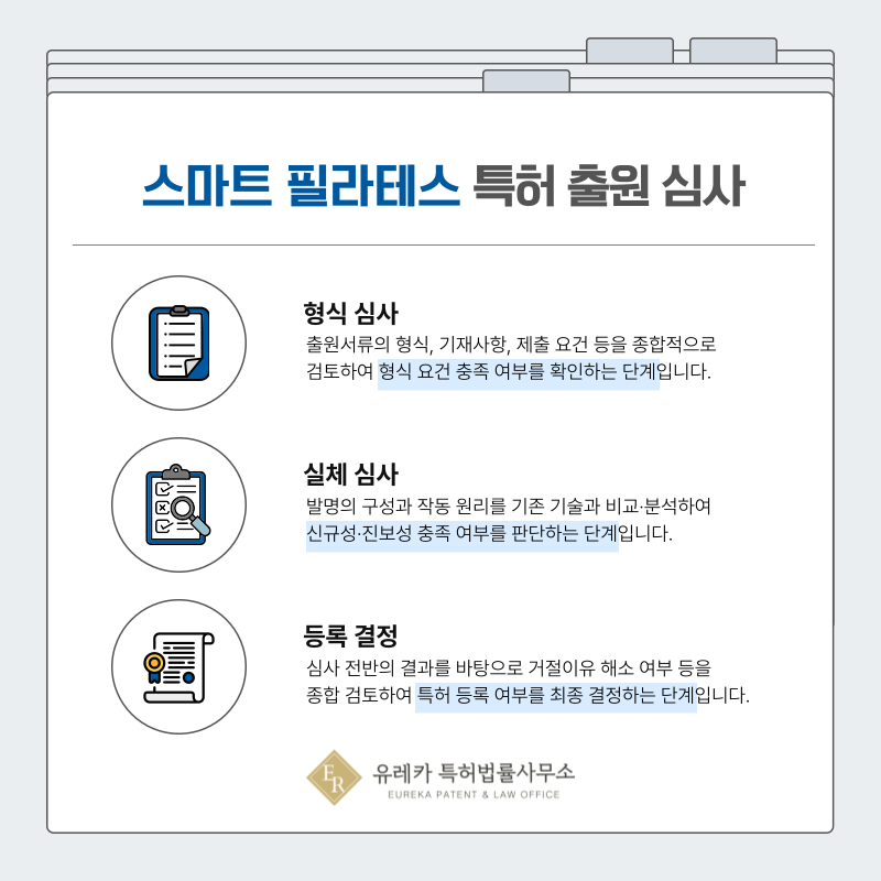 AI 맞춤 필라테스와 같은 기술을 출원하면 가장 먼저 형식심사가 진행됩니다.