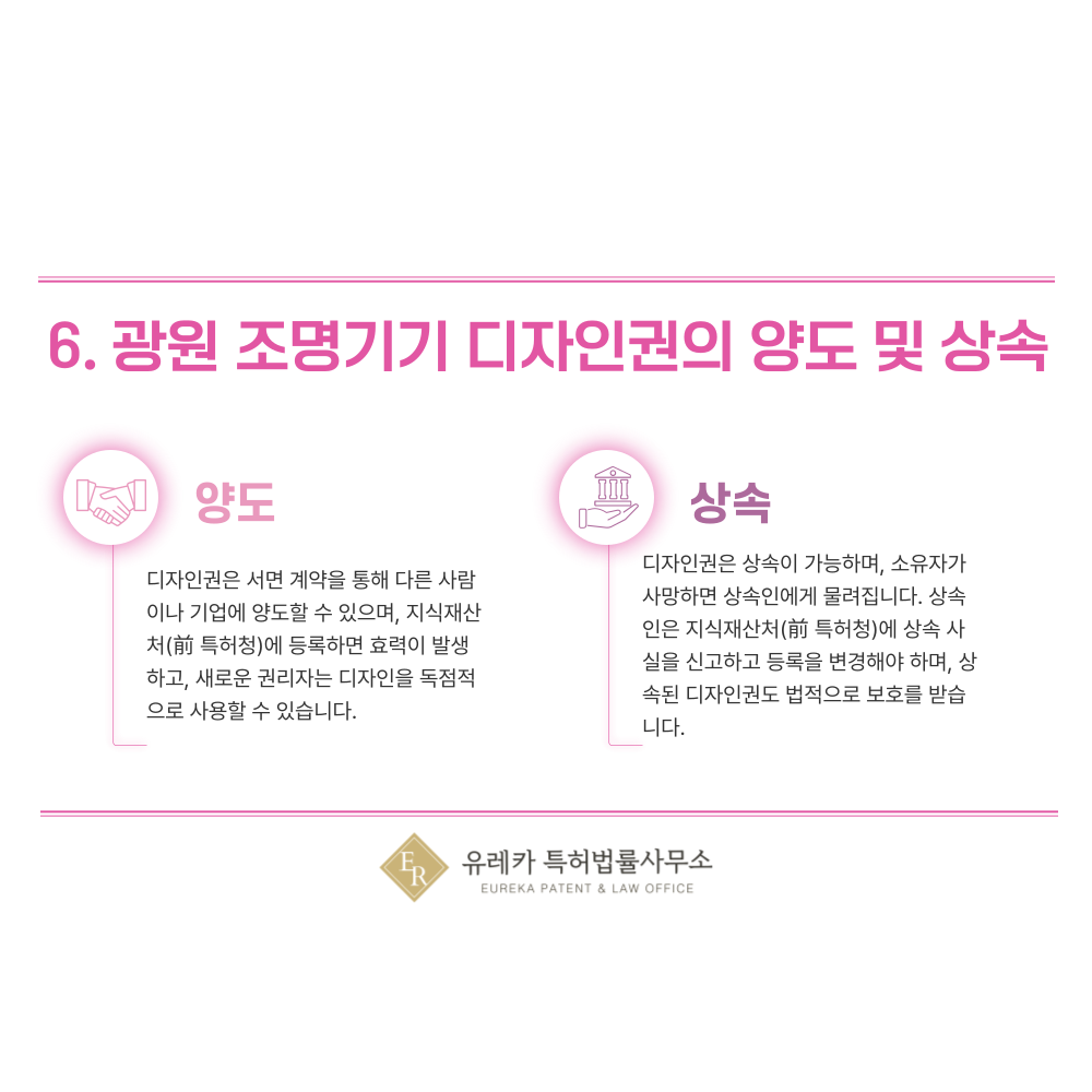 6. 광원 조명, LED, 형광, 백열, 할로겐 조명 디자인권의 양도 및 상속