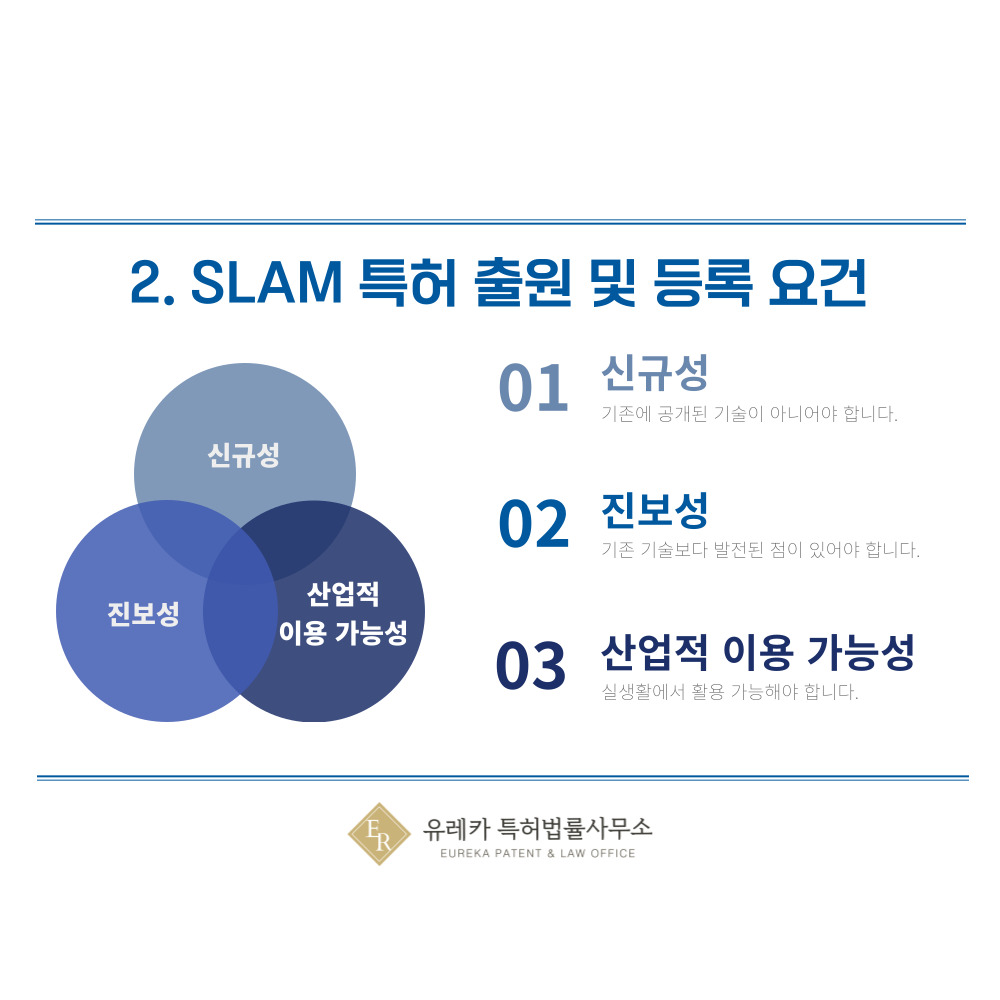 출원하려는 SLAM 기술이 기존 논문이나 특허, 제품 등에 공개된 적 없는 완전히 새로운 내용이어야 해요.