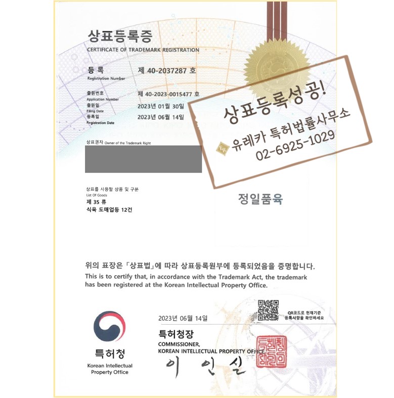 상호 상표등록이 유레카에서 완료되었습니다!