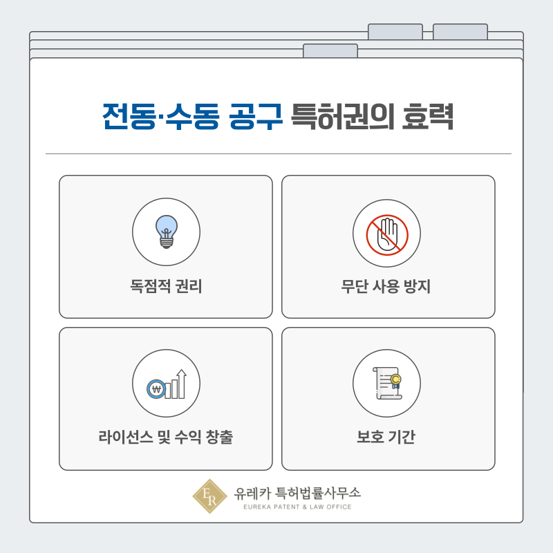 만약 경쟁사가 유사한 구조나 기능을 가진 공구를 생산·판매할 경우, 침해로 판단되면 경고나 손해배상 청구가 가능합니다.