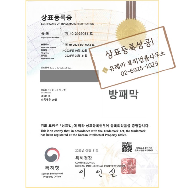 살균제, 탈취제, 소독제 "방패막" 유레카에서 상표등록 완료!