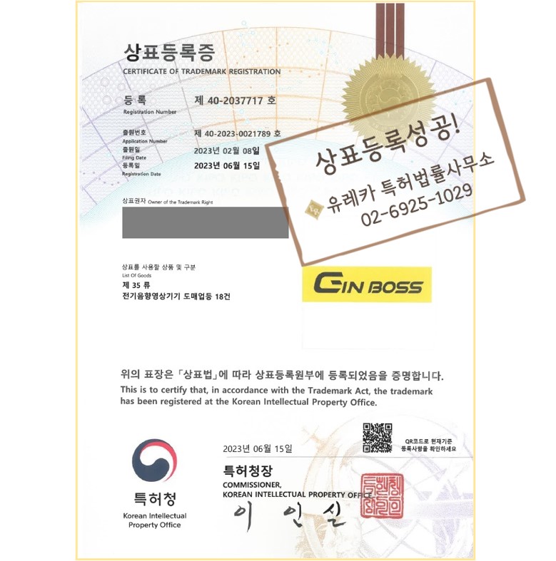 유레카에서 상표등록이 완료되었습니다!