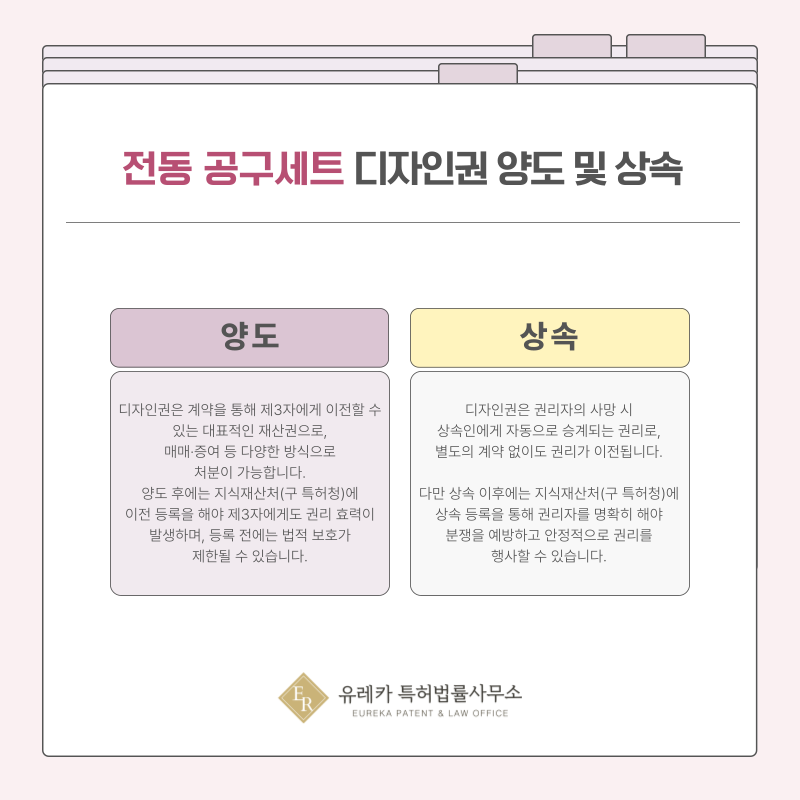 정밀 공구와 같은 산업 제품 디자인은 사업성과 연결되는 경우가 많아 상속 이후 관리 전략도 중요합니다.