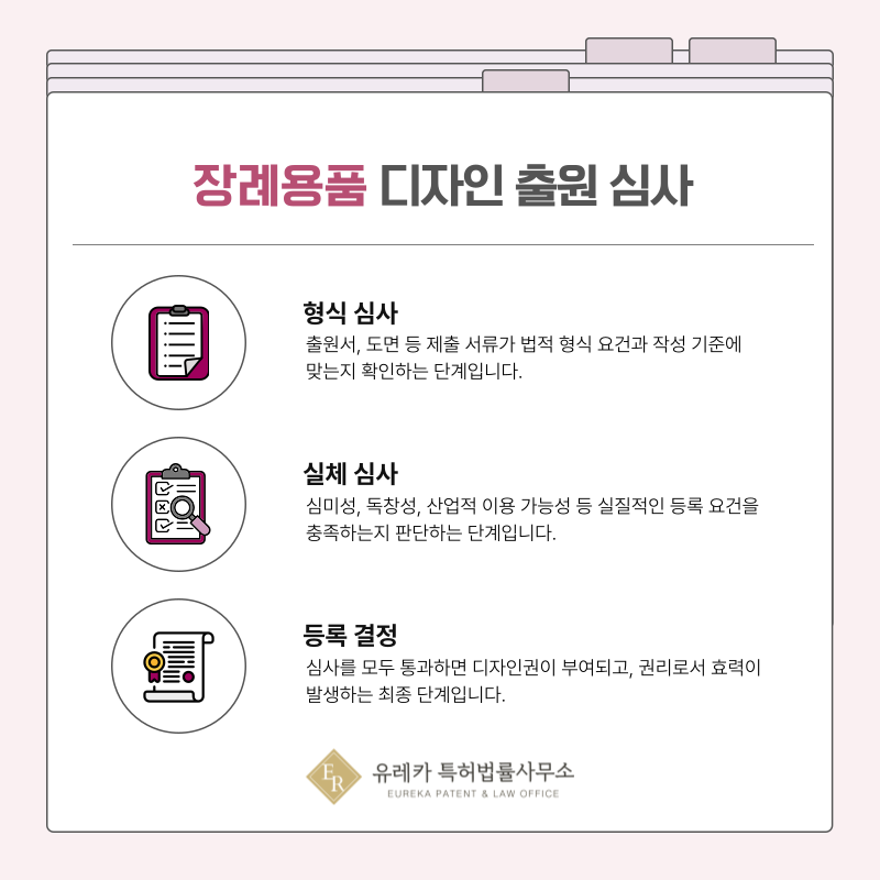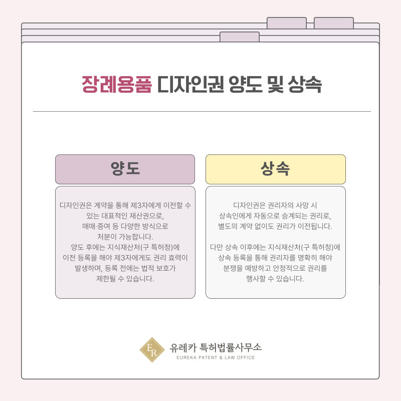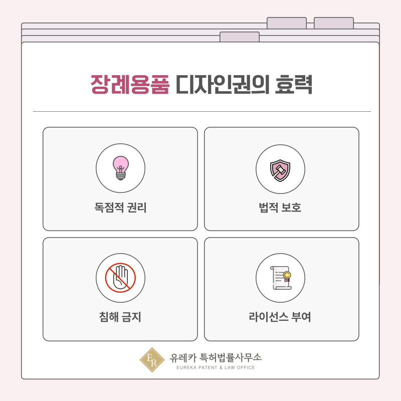 장례용품 분야는 브랜드 신뢰가 중요한 만큼, 디자인권 확보는 경쟁력 유지에 큰 도움이 됩니다.