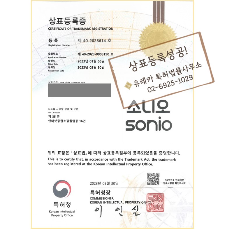 펫용품, 블로그마켓, 인터넷쇼핑몰 "소니오sonio" 유레카에서 상표등록 완료!
